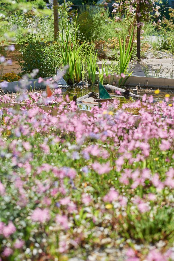 Die Lauben im Hof, Caféteriagarten - alters- und behindertengerecht. Lauschiger Rückzug, lebendiger Erlebnisreichtum und Erinnerungs- Nahrung, welche auch naschen lässt.